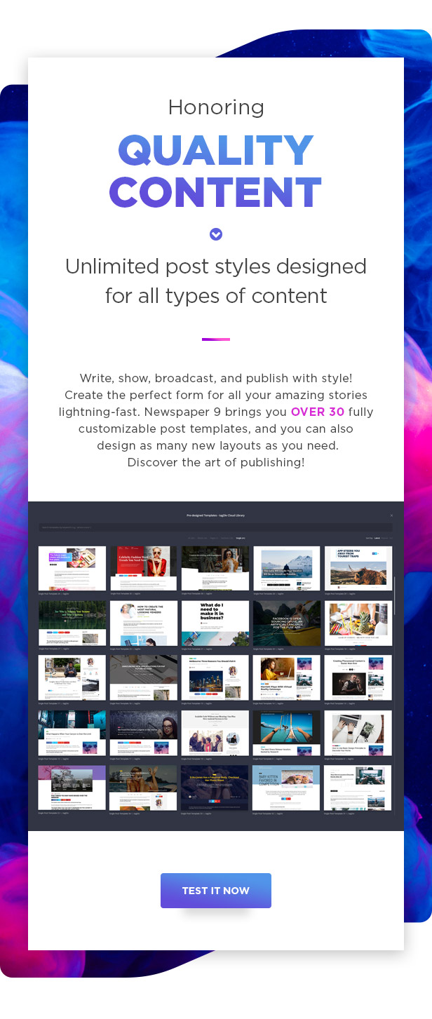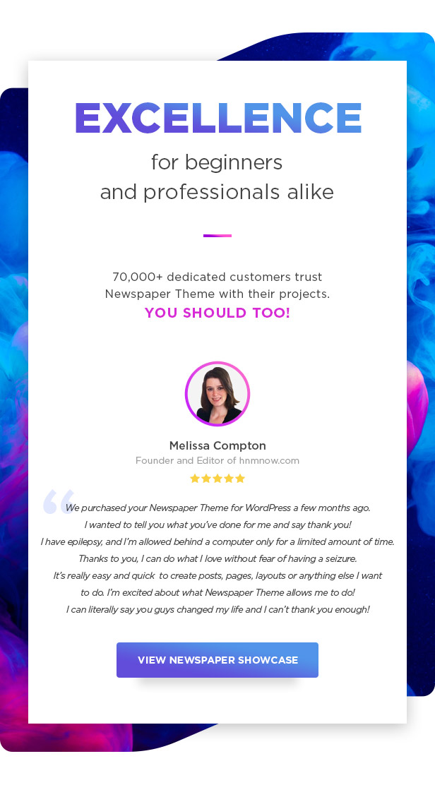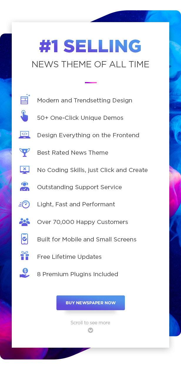 Newspaper is a WordPress theme that lets you write articles and blog posts with ease. We offer great support and friendly help!